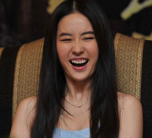 神仙姐姐刘亦菲不但有超凡脱俗的气质,而且也长了一张“天仙脸”。不过我们的天仙姐姐大笑起来仙气少了不止一点,本身有些微胖的脸瞬间被双下巴占据。