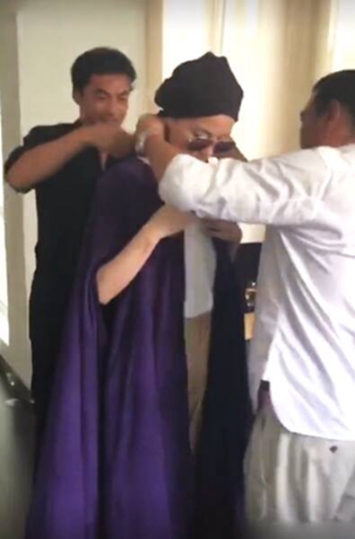 王菲复出工作后台视频流出 戴墨镜紫色长外套气场十足