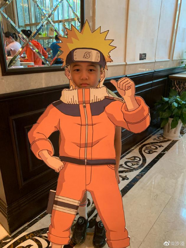 8月25日晚,沙溢通过微博晒一双儿子帅照,并称:“我们是超级赛亚人!”照片中,安吉和小鱼儿站在鸣人的人形立牌后面,因为不够高,小鱼儿还努力的踮起脚尖。网友看到此照片后纷纷围观并留言,集体纠错,称:“这是火影啊!!!你年纪大了。”“这是漩涡鸣人呀展堂!”“太可爱了,这两!”