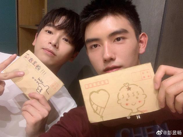 26日凌晨,陈飞宇晒出彭昱畅粉丝送错的信与送给自己的信,并喊话彭昱畅,“明天请晚饭,信就还给你”。同一天晚间,彭昱畅通过微博晒和陈飞宇合影,并透露称已经成功取回粉丝送的信,稍后,陈飞宇转发此微博并感谢彭昱畅的火锅。