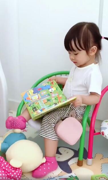 9月2日,熊黛林在微博分享了一个双胞胎姐妹日常的视频,并配文:“好好学习,天天向上。”视频中,姐姐Kaylor乖巧静坐,扎着小辫翻阅手中的图书;妹妹Lyvia在一旁挥动手中的玩具,玩到一半还站了起来。两姐妹一静一动,画面十分温馨幸福。