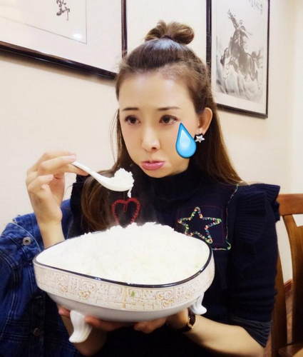 她今天在社群网站贴出自己嘟嘴哀怨照,照片中还配着一滴泪水,捧着一大碗白饭,她写着:“我很胖吗?以后只能吃一碗了。”还附注哭脸图,可见肚子频频被做文章,让她难掩在意心情。不少粉丝留言说:“这一碗也太大碗。”