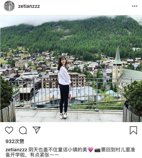 9月7日,章泽天在个人社交账号晒出一张回眸美照,并配文称:“阴天也盖不住童话小镇的美,要回到村儿里准备开学啦,有点紧张。 ”上月中旬,有网友爆料称看到了章泽天在剑桥大学的学生证,章泽天疑似赴剑桥大学读书深造。