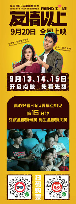 《友情以上》讲述了一对男女好朋友长达十年友情的暧昧故事,在泰国上映后,一举夺得2019年泰国票房冠军。此次在中国提前展开路演,该片凭借两性之间真情实感的现实话题,在各大高校掀起一股“脱单”热潮。映后见面会上,很多男生女生分享了曾经“友情以上”的亲身经历,并表示看完电影后想要打破现在的暧昧,勇敢和对方说爱,引爆现场的阵阵欢呼。