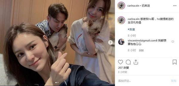 9月10日,林峯女友张馨月在个人社交网站晒出好友送的礼物并配文:“感谢我ho哥,ho嫂提前送的生日礼物。”照片中,张馨月对镜头甜笑比心,皮肤白皙气色佳。