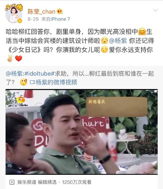 近日,杨紫在《中餐厅》里记错了《还珠格格》中的人物关系,以为萧剑跟柳红在一起,饰演柳红的演员陈莹随后转发回复,详细为杨紫解答了柳红最后的归宿。9月9日晚,杨紫又连发数条评论补习《还珠格格》,终于理清了所有人物关系。