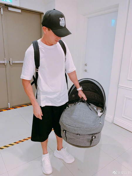 9月10日,安以轩在微博上分享了一张老公的照片,并配文:“我就想问你,5.3 kg,重不重~”还配上了几个偷笑的俏皮表情。照片中,安以轩老公单手提着装有爱子66的便携式婴儿床,
