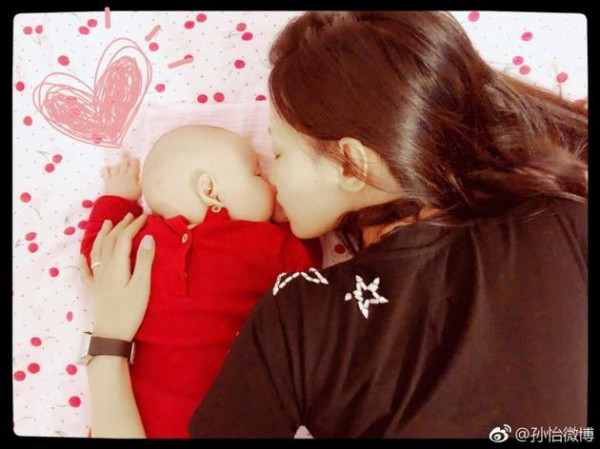 孙怡2日晚间在微博上晒出一张与女儿的合照,画面中只见她身穿黑色上衣,与女儿一起躺在床上,并嘟起嘴吻女儿的脸颊,一旁的宝宝则乖巧地趴在床上,紧闭着双眼,肉嘟嘟的脸颊非常可爱,身穿红衣也将她的肤色映衬得非