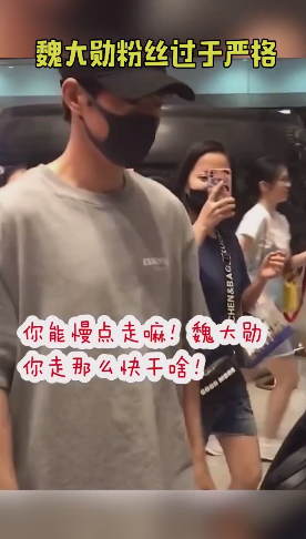 9月16日,有网友在微博上曝光一段魏大勋在机场的视频。视频中,魏大勋带着黑色的帽子和口罩快步行进,被拿着手机拍摄的粉丝围住,有粉丝在一旁冲着魏大勋用东北口音“抱怨”:“你能慢点走吗,魏大勋?你走那么快干啥?”“蹭蹭地……你走那么快干啥?” 听到这些话的魏大勋忍不住捂嘴偷笑。网友们不禁感叹:“魏大勋的粉丝过于严格了。”“这届粉丝真是太难带了。”