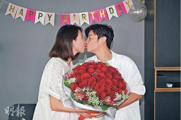蔡少芬46岁生日宣布封肚 挺孕肚向张晋送吻
