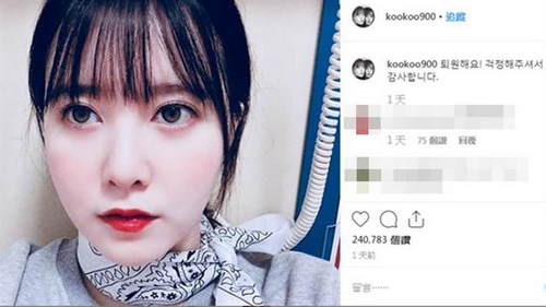具惠善出院晒自拍 已悄悄删光“安宰贤外遇”内容