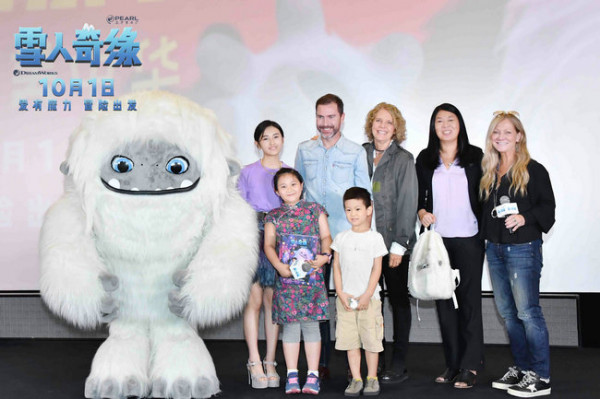 随后,东方梦工厂首席创意官兼影片制片人周珮铃女士、影片导演及编剧吉尔·卡尔顿、联合导演托德·维尔德曼、制片人苏珊妮·伯尔基女士、中文配音演员张子枫在观影开始前来到影厅内与到场观众亲切互动。影片的主创们表示最喜欢的中国景点是乐山大佛,并希望大家喜欢这个首次将中国现代家庭以及中华美景展现给全世界的冒险故事。当有观众问到片中雪人大毛创作灵感时,导演及编剧吉尔·卡尔顿回答说,雪人大毛的灵感源自于她家里的一条可爱的大狗,所以片中的大毛也像狗一样毛茸茸的。