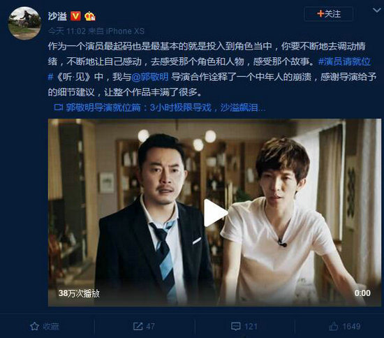 沙溢郭敬明发文谈演员标准:要感受角色和人物