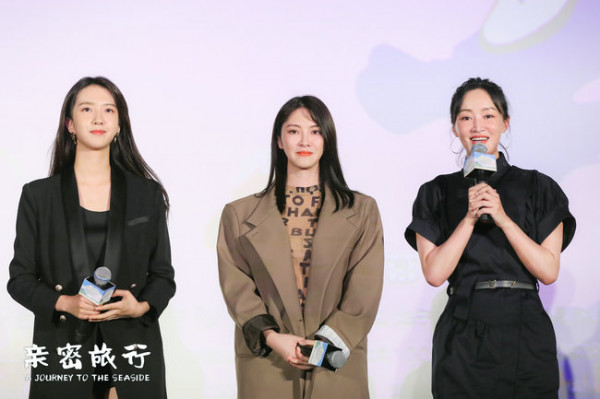 赵子琪、朱锐、许龄月在《亲密旅行》首映发布会上