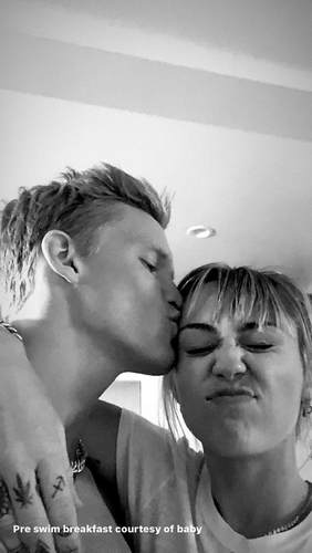 公开秀恩爱!歌手科迪·辛普森晒与麦莉亲密合影