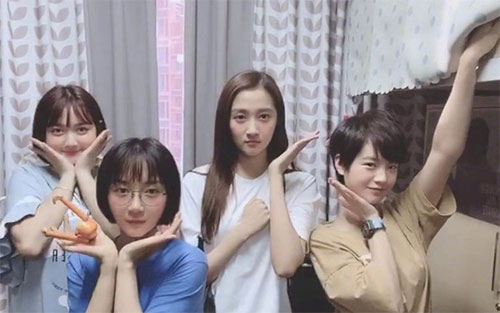 10月8日,关晓彤分享了和《二十不惑》主演在宿舍内拍摄的小视频,还配文“今日份四个开心的小fafa~”。视频中,四个女孩一起跳手势舞,关晓彤站在中间,《小欢喜》里乔英子扮演者李庚希站在关晓彤左手边,四个女孩一起跳手势舞,十分活泼可爱!