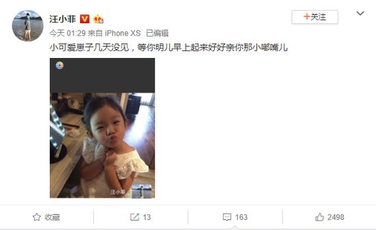 汪小菲几天不见女儿太思念:明早起来好好亲亲你