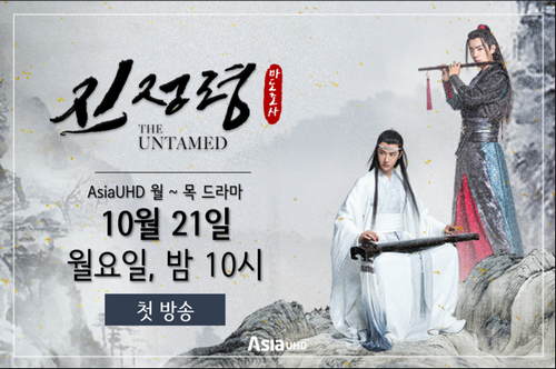 网曝肖战、王一博等主演的《陈情令》韩国定档,将于2019年10月21日晚10点在AsiaHUD台开播,周一至周四每天2集连播。韩国宣传海报同时曝光,剧名《陈情令》,副标题《魔道祖师》,播出方式为原音+韩语字幕。