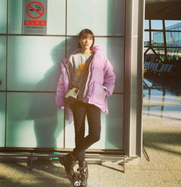 12月4日,演员马思纯在微博上晒出一张照片,配文:“机场晚点等候人员摆拍。”照片中马思纯身处机场,靠在墙上,身穿粉紫色羽绒外套,还斜斜地挎了一只黑白相间的小挎包。眼神灵动,表情