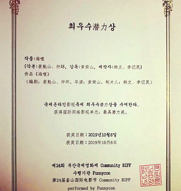 第24届釜山电影节近日揭晓国际网络影视单元奖项,中国演员裴魁山主演并担当编剧的悬疑烧脑剧情长片《海噬》获得“最具潜力奖”。该片由新锐导演黄荣山执导,李记民、韩文担任制片人,裴魁山、阿如那、王双宝主演,由宇宙影业、天狐影视、看购影业、国标新影、钜成传媒等共同出品。
