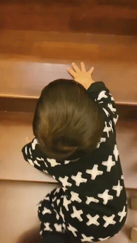 张歆艺儿子爬楼梯10月24日晚,张歆艺晒出儿子爬楼梯的视频,并以四坨的口气称:“没有什么能够阻挡,我对自由的向往。”视频中,已经8个月的四坨身穿黑白连体衣,光着小脚丫,双手趴在
