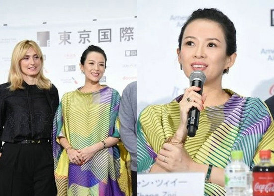 一晚过后,章子怡今日与日本导演广木隆一、法国女星Julie Gayet、好莱坞金牌监制Bill Gerber及丹麦导演Michael Noer等出席评审记者会。章子怡穿上七彩松身上衣遮巨肚,脚踏高跟鞋现身。她表示入围东京电影节的作品,有来自中国、日本、法国、菲律宾等十分多样化,自己作为评审员,会公正评审包括中国的作品。