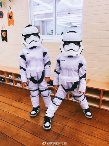 10月31日,林志颖在微博上晒出双胞胎儿子的照片,并配文称:“猜猜我是谁。”粉丝们纷纷评论道:“分不清啊,双子星很可爱呢~”“当然是可爱的双宝kyson和jenson!”
