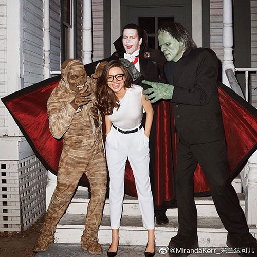 11月1日,辣妈超模米兰达·可儿在微博晒出万圣节的照片。照片中,产后半个月的可儿身穿紧身白色T恤出镜,小腹十分平坦。