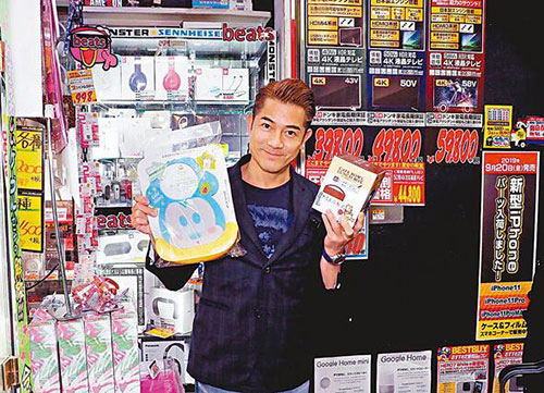 郭富城与杨千嬅这次日本行虽然有停不了的工作,但他们等完成工作之后,便一齐拉队逛激安店,杨千嬅每次游日本也必到该店,所以是常客,不过同行的丈夫丁子高却从没逛过,杨千嬅笑说:“我们结婚10年都没有一齐逛过激安店,这次真的要逛一下!”二人更在店前打卡!至于郭富城原来也是第一次逛,他对电子用品很有兴趣,可是却没有收获,反而选购了饭壶和围兜给爱女大宝和二宝,杨千嬅则买了万圣节服饰给儿子Torres。