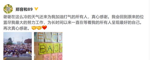 郑容和退伍后首发文:会努力工作呈现最好的自己