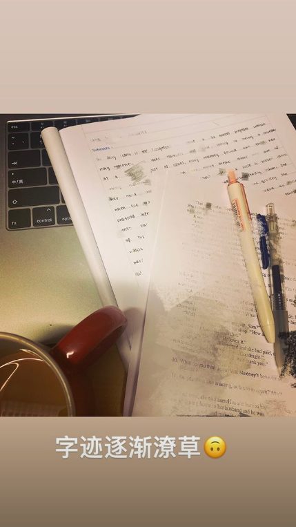 李嫣瑞士嗨玩后狂补作业?自嘲:字迹逐渐潦草