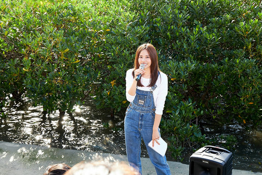 而吴汶芳自从开始关注环保、生态议题后,就梦想未来能成为生态导览员,为了这次的“圆梦计划”,吴汶芳早早拉着工作人员一起去上课,充实专业知识,活动前,工作之余全力投入搜寻相关资料,做好万全准备。在抵达目的地红树林湿地生态区,她正式变身生态导览员,展开认真解说,“我们的生活习惯会对环境造成直接影响,所以很多湿地都是面临快要消失之后才又透过人工建造回来的…”为了不让近30分钟的课程枯燥,她还设计了搞笑有奖征答,比如“哪一种鸟喜欢白天在红树林休息,晚上觅食?a.暗光鸟b.想睡觉c.不想叫”选项逗得粉丝大笑,吴汶芳笑说:“其实很怕大家觉得解说太严肃,会有点无趣,所以才出一点小花招,让他们觉得生态一点都不无聊!”