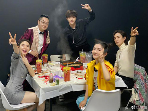 谢娜录节目晒合照 与戚薇陈立农等吃火锅超欢乐