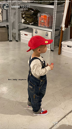 11月9日,余文乐在其个人社交平台晒照,分享1岁半爱子余初见的近照,并配文写到“Not baby anymore!”照片中,1岁半的余初见身穿牛仔背带裤,白色的长袖T恤,再搭配红色的棒球帽及红色的鞋子,手上拿着一个疑似红色的玩具车,若有所思地看着前方。从小宝贝这一身潮流帅气的装扮来看,颇像潮人爸爸余文乐的风格。