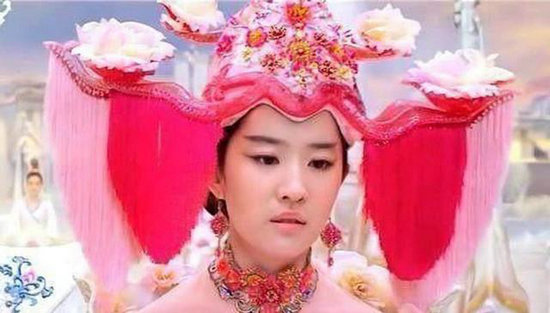 刘亦菲版《三生》大婚时头上的造型给人感觉像是直接把窗帘戴在了头上。