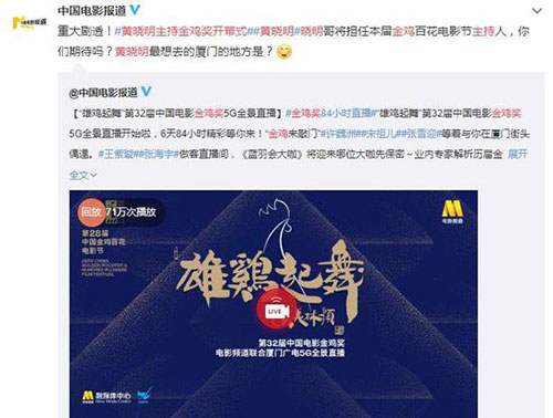 黄晓明任金鸡奖主持人 网友期待“明言明语”