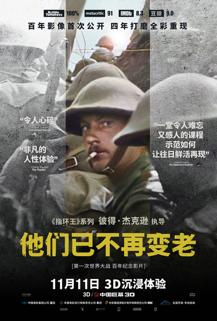 由《指环王》《霍比特人》系列导演彼得∙杰克逊执导,烂番茄好评率100%、豆瓣8.8高分史诗级战争纪录片《他们已不再变老》正在热映,即刻购票,见证百年影像革新。