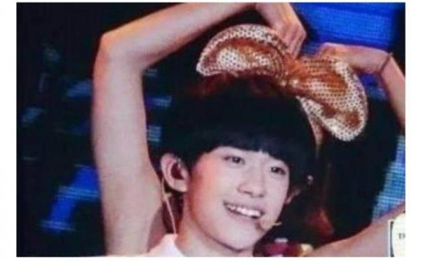 易烊千玺,这样错位照里,大佬戴上了金光闪闪的头饰!满脸笑容,真的是可爱到犯规!让人期待大佬带上这样的发饰试一试~~~