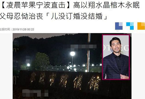 高以翔的二哥也在灵堂为弟弟助念,高家二老则已回饭店讨论后事并且休息,而经纪人称高以翔女友Bella“还未到场”,外传她和高以翔已订婚或结婚,经纪人代高家否认:“没有结婚,没有订婚。”