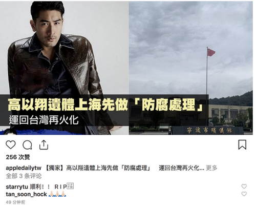 曝高以翔遗体于上海做防腐处理后 再运回台湾火化