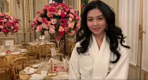 邱淑贞女儿沈月出席巴黎名媛舞会 留卷发气质温柔