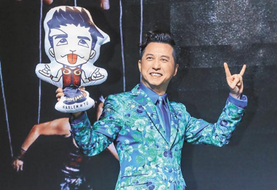哈林昨出席发片记者会,带着奇葩脸Q版哈林猴娃亮相。