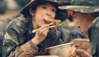 杨幂参加《真正男子汉》应该是真的饿坏了,手上还有泥巴,仍然夹起肉就往嘴里塞。