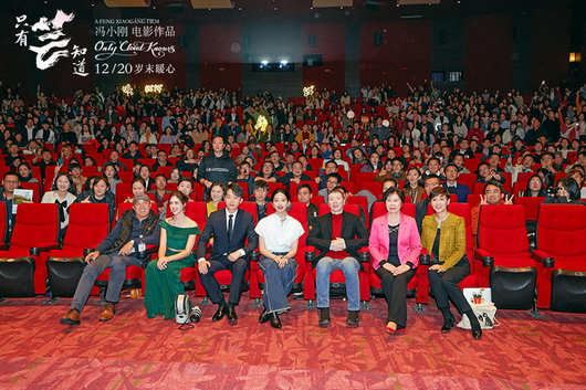 12月9日,电影《只有芸知道》在上海举办超前观影,导演冯小刚携编剧张翎,主演黄轩、杨采钰、徐帆、Lydia Peckham全阵容亮相。千人影厅座无虚席,影片真挚爱情感染全场观众,不仅男观众现场表白爱人“我爱你”,更有19岁大学生感悟到“家庭的重要性”。而携手62年的“钻石婚”夫妻相爱、相守的故事,更是为片中“风芸”的爱情做了美好的回应。首次观看全片的黄轩也直言:“今天妆白化了,一包纸巾都哭完了。”