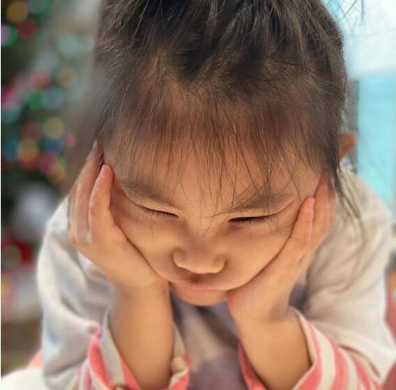 12月12日,陈冠希在个人社交网站晒出女儿的一张近照,妈妈秦舒培第一时间点赞。照片中,Alaia扎着头发,双手托腮发呆,整个脸都扭曲了,眼睛也被挤成一条缝,模样十分可爱。