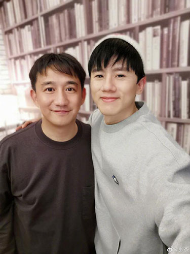张杰晒与黄磊搭肩合影 面对镜头微笑关系融洽