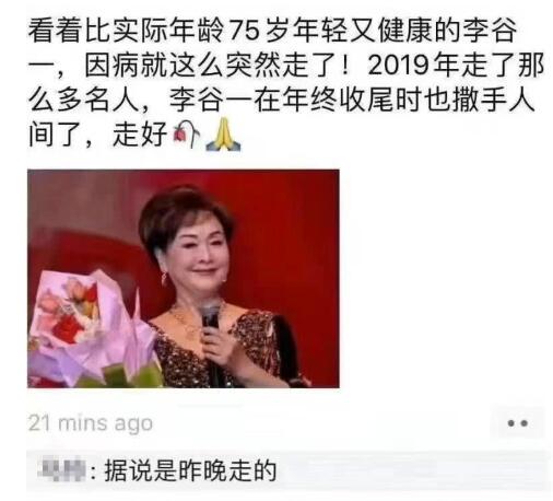 75岁李谷一被传去世 本尊亲自辟谣:活得挺好