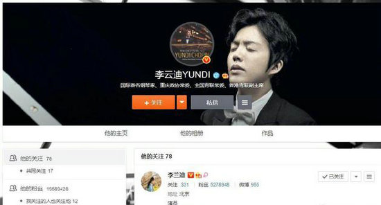 网友误将李兰迪写成李云迪 引发二人互关互动