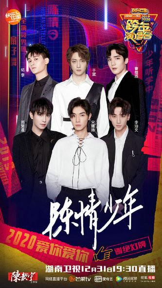 说到今年爆红的团体,陈情少年团绝对算一个。2019年,《陈情令》爆火了整个夏天,并将这把火延续到了湖南卫视跨年演唱会,据最新嘉宾阵容,宋继、郑繁星、李泊文、于斌、纪李、曹煜辰几位陈情少年将加盟湖南卫视跨年,他们将会在跨年现场带来怎样的表演?令人期待。而另一个新生偶像团体BEST,作为中国内地流行乐男子组合,2019年出道以来同样积累了无数粉丝的关注,此次他们也将在湖南卫视跨年演唱会为观众带来惊喜。