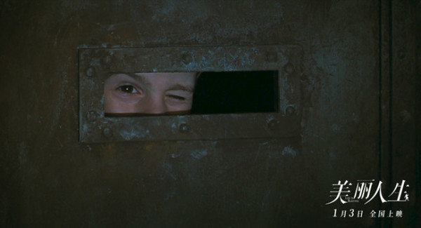 在此次发布的“笑着再见”版预告开头,儿子约书亚问爸爸“游戏什么时候结束”,他不知道身后破烂不堪的床板、穿着肮脏囚服的叔叔们意味着什么,可是爸爸知道、观众知道,这是时刻存在死亡危险的集中营。但是父亲圭多却把集中营生活“包装”成一个一千分的游戏,只要坚持下去,第一个拿到一千分,就能结束游戏,离开这里,还能赢得一台真正的坦克。这个让约书亚深信不疑的“谎言”,保护了他天真烂漫的童心,让这段原本黑暗的时光成为了儿子约书亚与父亲之间最温柔的回忆。
